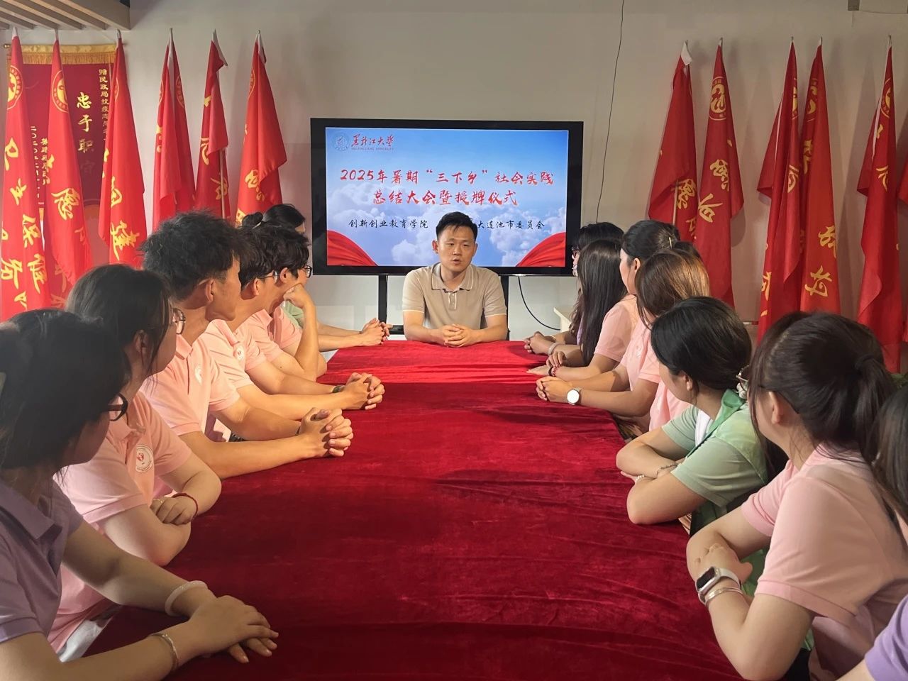 与共青团五大连池市委员会于7月18日在五大连池市新时代文明实践中心联合举办“三下乡”总结大会暨社会实践基地授牌仪式。共青团五大连池市委员会书记宁禹及相关负责人,“萤火育兴”服务队全体成员出席此次会议。
