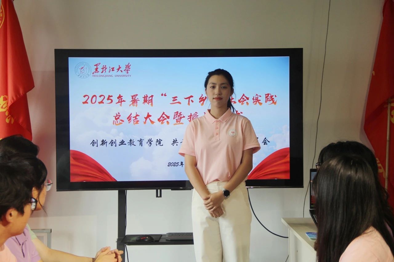 随后,“萤火育兴”服务队队长李夏蒂对共青团五大连池市委员会给予服务队的支持表示感谢,分享了服务队在当地开展支教、调研等活动的经历;队员代表肖靖文和曲炫熹分享了实践期间的收获与感悟,字里行间流露着青年学子在社会实践过程中的成长与蜕变。服务队队员一致表示,将继续秉持“奉献、友爱、互助、进步”的志愿精神,为社会发展贡献青春力量。