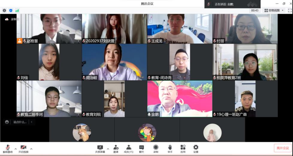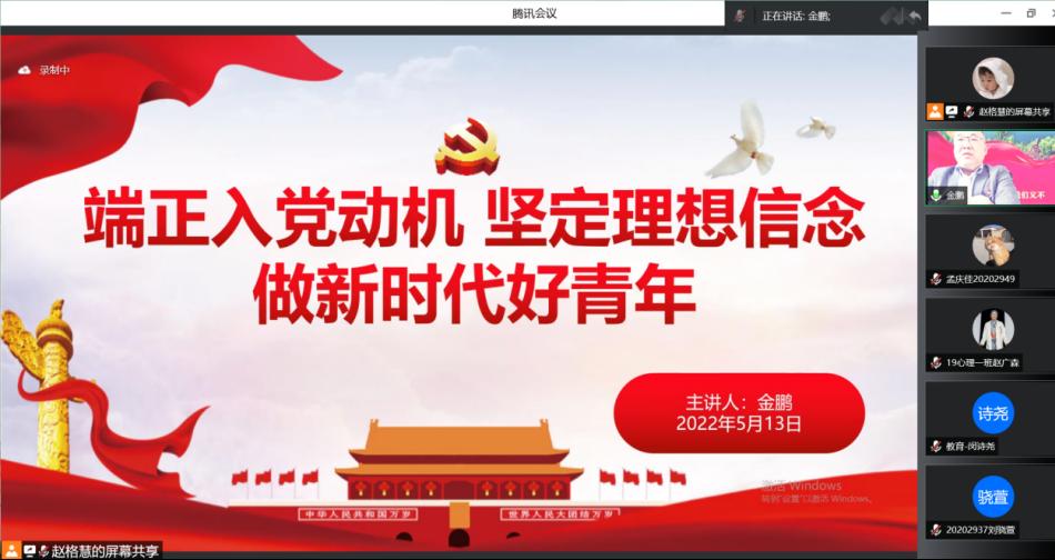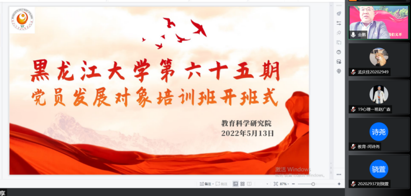为深入学习贯彻习近平新时代中国特色社会主义思想,持续加强对党员发展对象培养考察,进一步提高党员发展政治素养,教育科学研究院于2022年5月13日9时举办第六十五期党员发展对象培训班开班式。会议由学院组织员刘锐主持,学院党总支书记金鹏、党总支副书记付丽、团委书记闵诗尧、团委副书记梁曼及培训班全体成员参加会议。