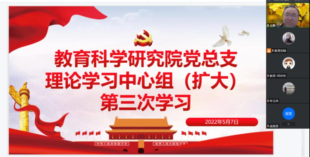 为落实我校“能力作风建设年”工作部署会精神,增强学习的自觉性,推动学院高质量发展。2022年5月6日19时,教育科学研究院党总支召开理论学习中心组(扩大)学习会,对省第十三次党代会报告进行深入学习和交流研讨,全体成员参会,院长王世红、教育系主任孙明娟列席会议,会议由学院党总支书记金鹏主持。