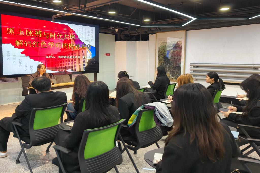 学院团委副书记梁曼以《黑土脉搏与时代共燃:解码红色学府的精神基因》为题,围绕“传承·薪火相传中的精神密码”“担当·奋进征程中的青年答卷”“引领·时代浪潮中的先锋力量”三方面,结合校史红色基因、青年实践案例等展开讲解。希望学生党员积极响应国家号召,投身创新创业,以踔厉奋发的精神风貌、真抓实干的务实作风,赓续麻豆视频