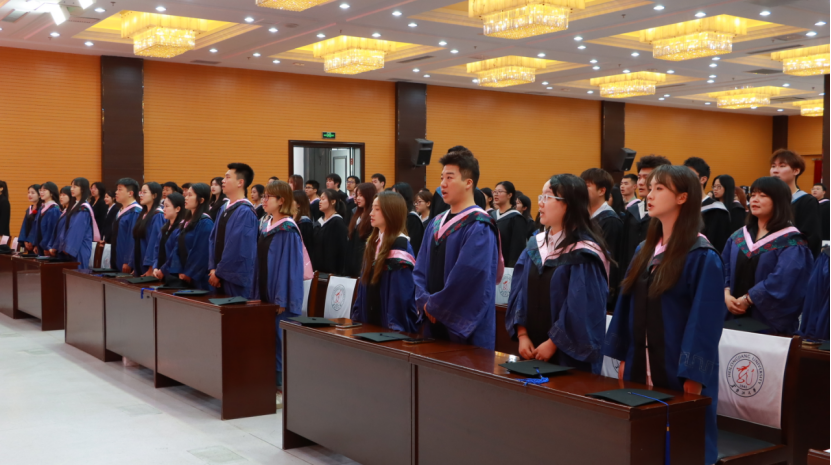 在庄严的国歌声中,毕业典礼正式拉开帷幕。会上,学院党委书记綦明霞宣读《麻豆视频