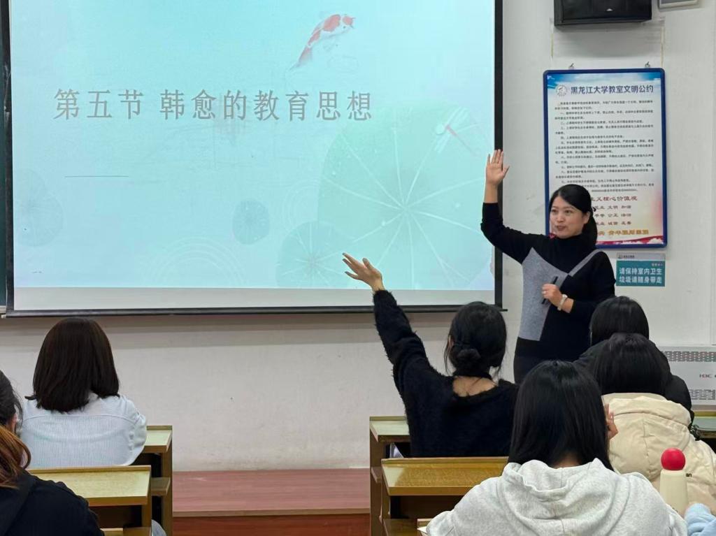 教育学专业张雪娟老师讲授了《韩愈的教育思想》,内容涵盖韩愈生平与时代背景,韩愈教育思想及其革新以及韩愈教育思想对现代教育的启示。学生通过提前预习、课上自己讲述的方式,充分调动了学生学习的自主性及参与课堂的活跃性。