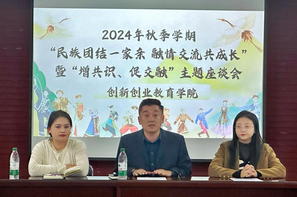 于10月9日在四号楼多功能厅召开2024年秋季学期“民族团结一家亲,融情交流共成长“暨“增共识、促交融”少数民族学生座谈会。本次会议由院团委副书记宋美琪主持,党委副书记屈广宁、学生工作部(学生处、武装部)少数民族专职辅导员沙依达木·哈力甫江、学院各年级辅导员出席,少数民族学生代表参与。