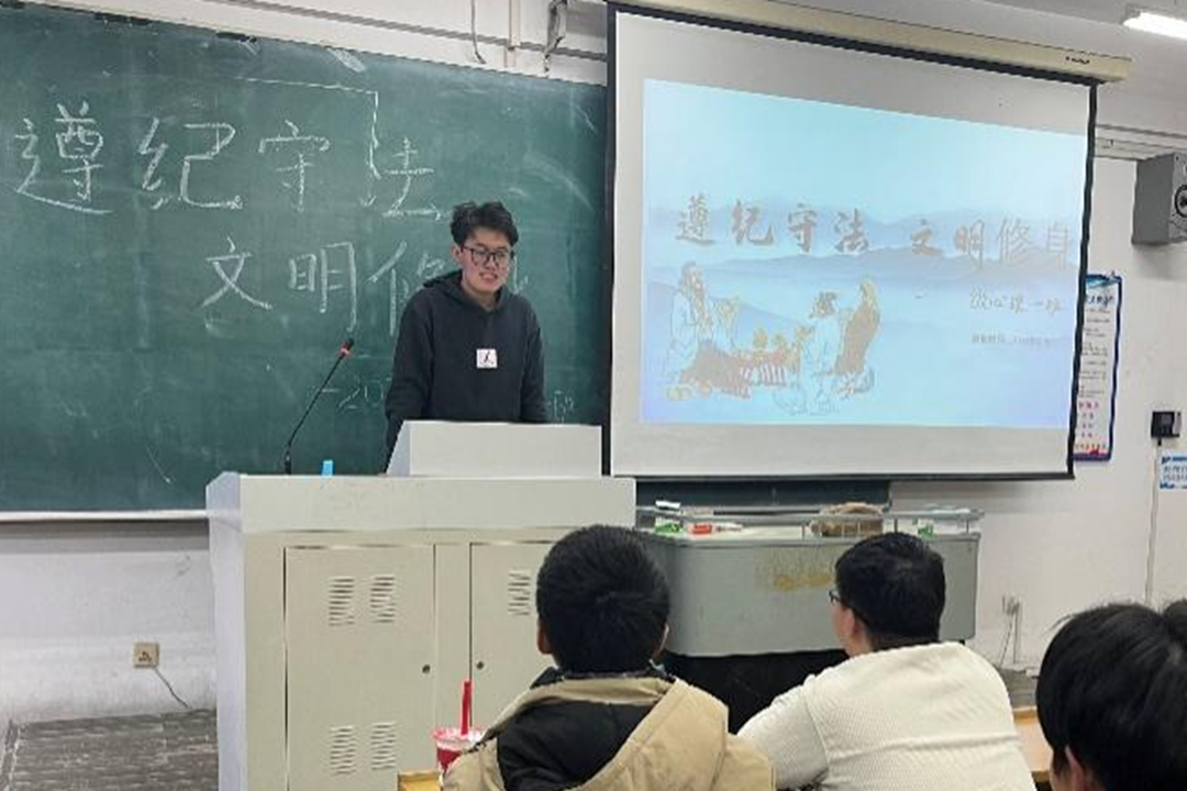 2023年12月15日,2023级各班召开“遵纪守法 文明修身”主题班会,班长领读领学《学生管理规定》具体内容,班级同学围绕“如何做一名遵纪守法的合格大学生”展开讨论。