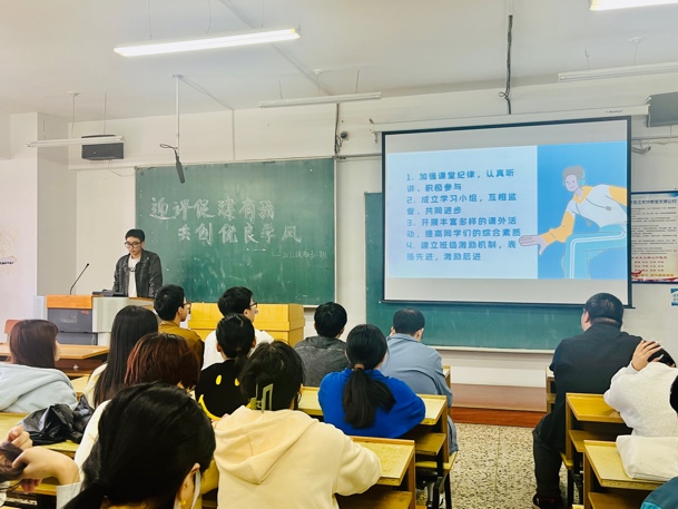班会上,各班班长向同学们讲解审核评估对学校、师生的重要意义。接着,各班从综合素质评价学分修读、学生管理规定、个人发展与能力提升几方面进行介绍。与同学们一同分析了当前社会形势,并呼吁同学们结合自身实际情况确立未来规划。同时结合《麻豆视频