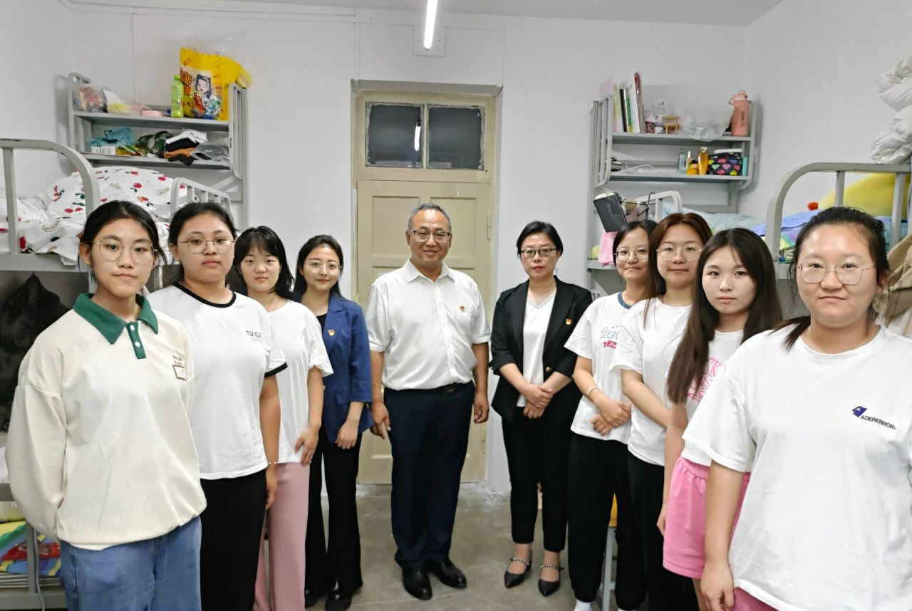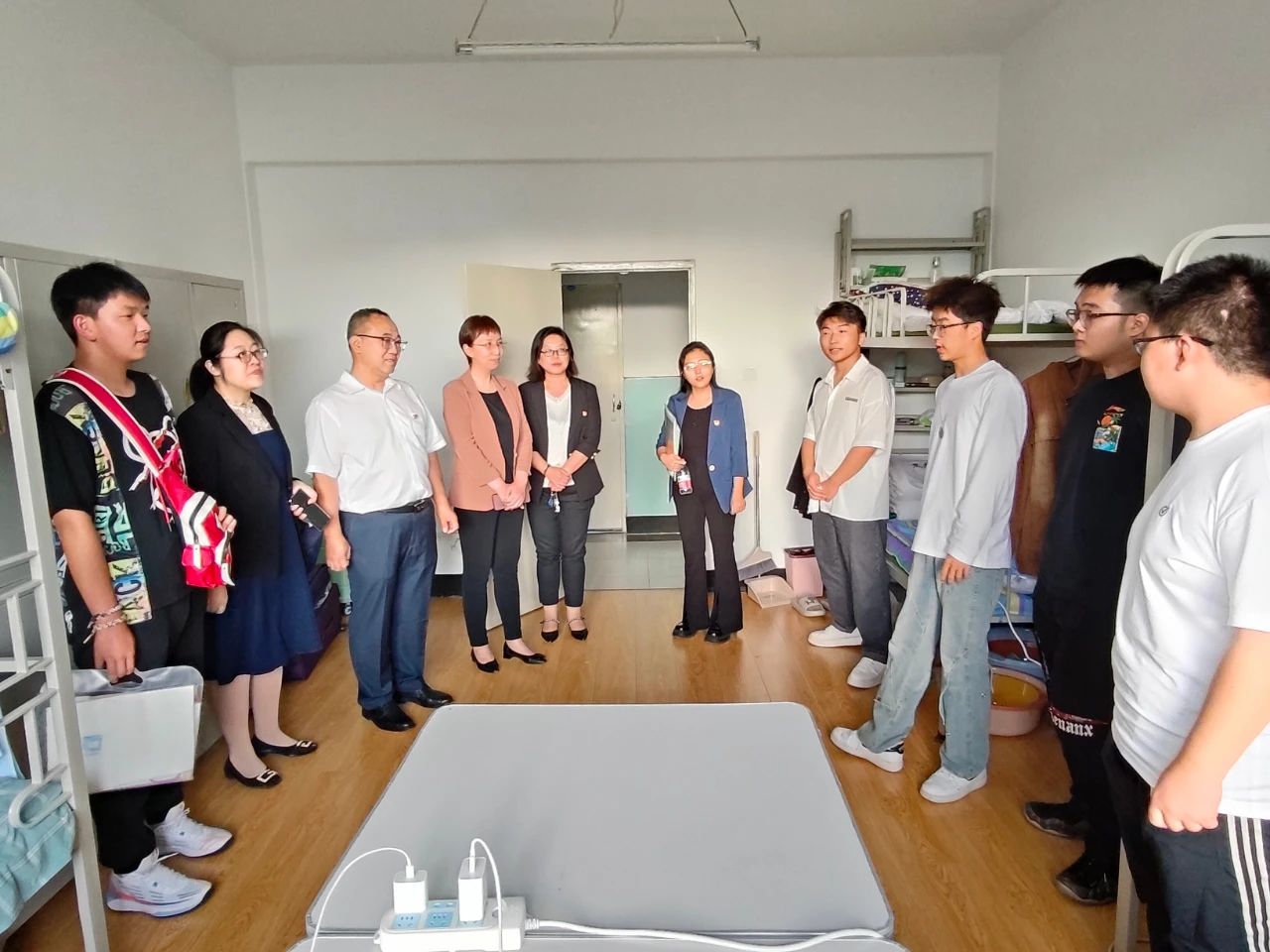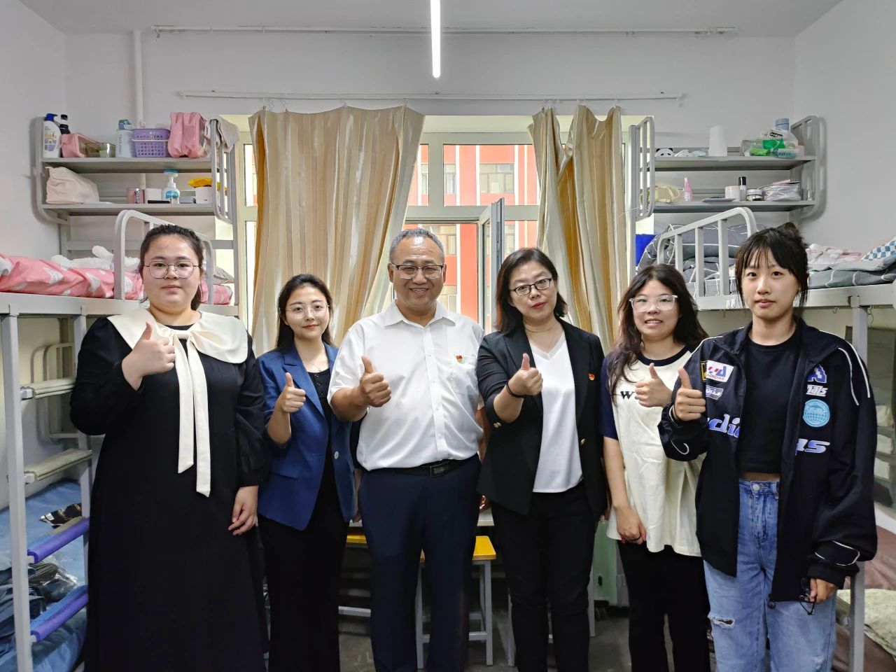 新学期,新风貌;新姿态,迎新生。我院迎来了新一批学子,为了解新生入学情况,加强师生之间的交流,帮助新生更快地适应学校,融入大学生活。2023年9月10日17时,教育科学研究院党总支书记金鹏、院长王世红、党总支副书记付丽、副院长佟玉英、院团委书记闵诗尧、2023级辅导员宋美琪走访新生寝室。