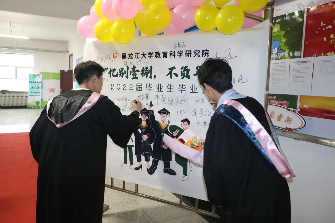 最后,全体师生齐唱《再见》,优美激昂的旋律久久回荡,让同学们将黑大精神—博学慎思,参天尽物镌刻在心中。毕业生们在一幕幕离别的欢声与泪光中,在一首首饱含怀念与离别的歌声中,在一阵热烈而不舍的掌声中,告别了这个寄托了四年青春的地方。