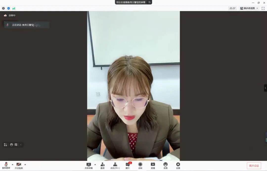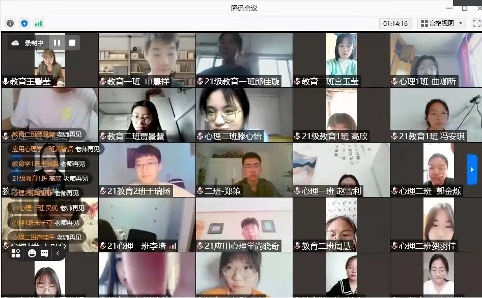 为快速构建辅导员与新生间沟通桥梁,增强师生间联系,及时传达学校精神,帮助2021级新生尽快熟悉学校学院情况,了解相关制度,促进后续工作顺利开展,2021年9月3日上午9时30分,教育科学研究院于腾讯会议平台召开线上2021级第一次年级大会暨入学教育大会。本次会议由2021级辅导员王馨莹老师主讲,院党总支副书记付丽、2021级全体学生参会。