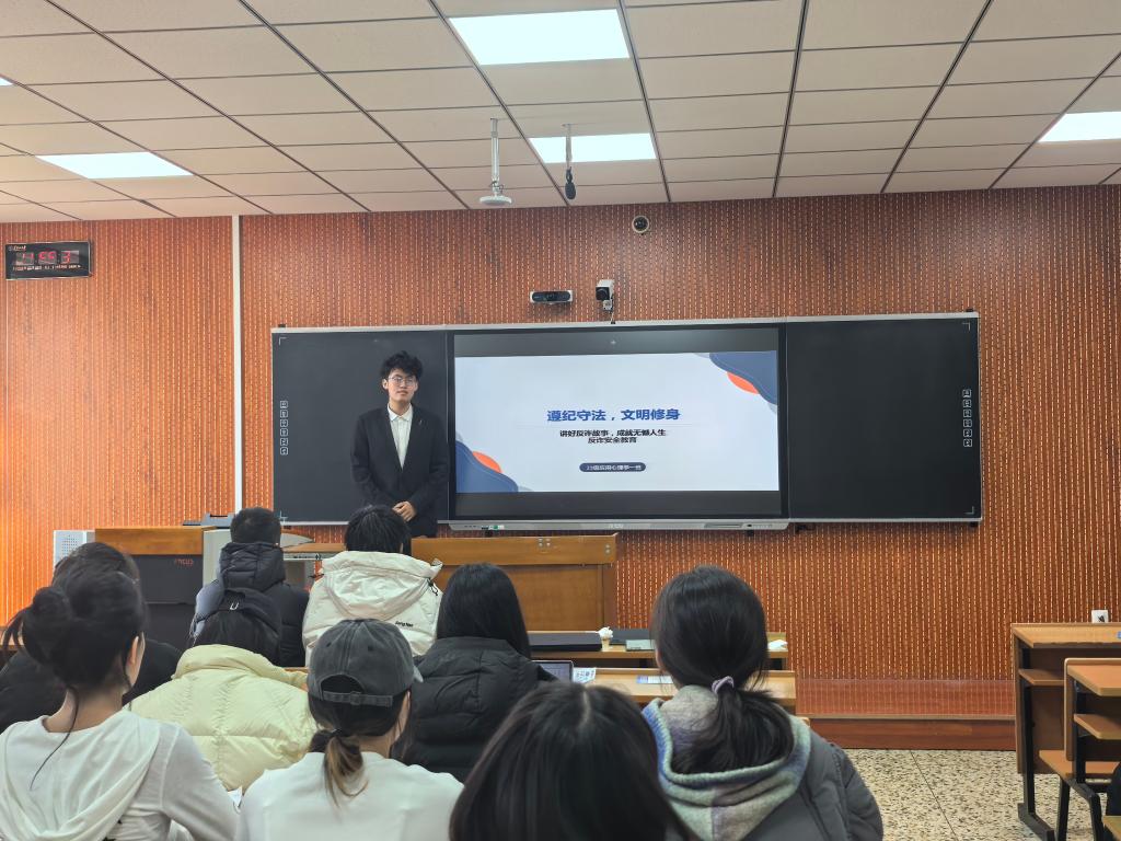 各班级首先围绕着反诈防骗展开重点讲解。结合当前针对大学生的刷单返利、虚假网贷等高发诈骗类型,通过案例拆解诈骗分子的套路逻辑,强调“不轻信、不透露、不转账”的防骗原则。 随后,各班级详细解读了学生管理规定的核心内容,在考勤方面,强调课堂学习、实训实践、项目答辩等环节的考勤;学术诚信方面,严禁抄袭、剽窃他人创意或科研成果,伪造实验数据、项目材料等学术不端行为;校园安全方面,宿舍内严禁使用违规电器,创业实验室需严格遵守操作规范,杜绝安全隐患。