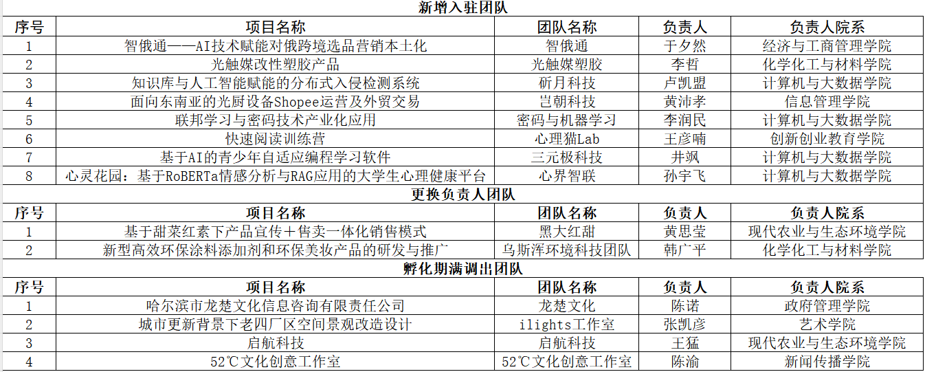 经麻豆视频 学生科技文化创业园专家组评审,2025年度秋季学期麻豆视频 学生科技文化创业园学生创业团队调整公示如下: